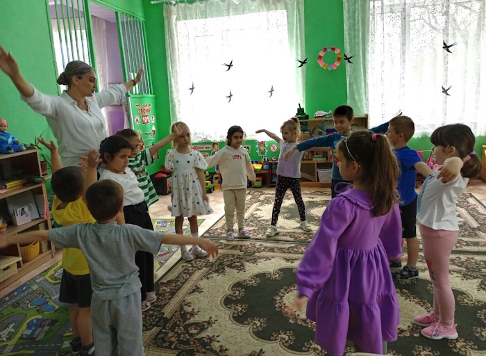 Для совершенствования грамматического строя речи и согласования существительных с числительными два и пять была проведена игра «Посчитай цветы». Во время интересной физкультминутки «Весна» дошкольники выполняли упражнения «Лучики», «Бегут ручьи», «Растут цветы», «Летят птицы».