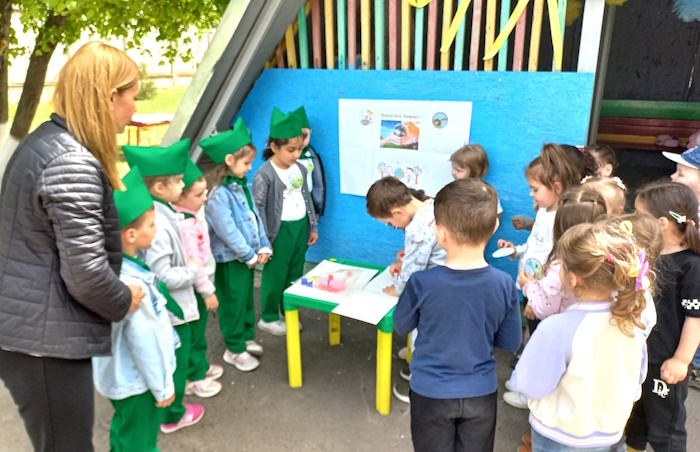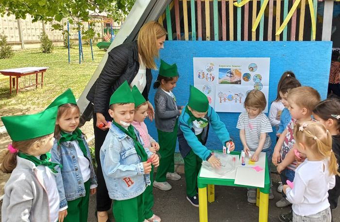 Эколята-дошколята провели тематические мероприятия с детьми младших возрастных групп. Составили коллаж «Берегите землю» с ребятами средней группы, а знаки «Правила поведения в природе» подарили детям младшей группы.