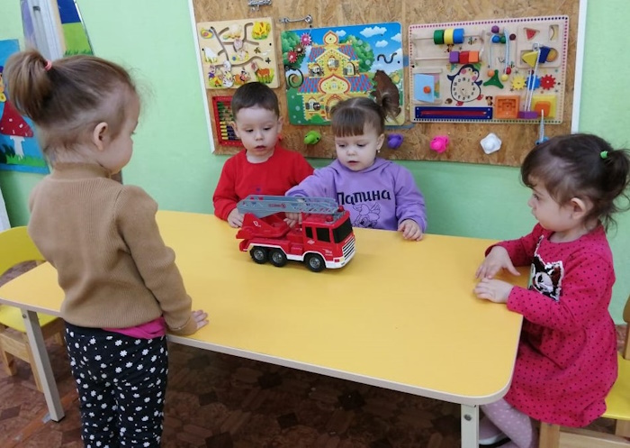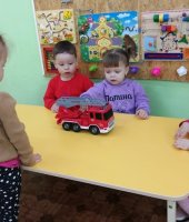 В рамках темы недели «Спички детям не игрушки» в группе раннего возраста «Малыш» были проведены познавательно - игровые мероприятия. Дети рассматривали сюжетные картинки и узнавали как вести себя в опасных ситуациях, собирали картинки – половинки, рассматривали игрушечную пожарную машину, познакомились со стендом по пожарной безопасности.