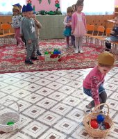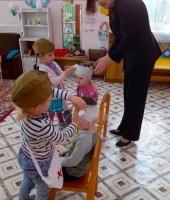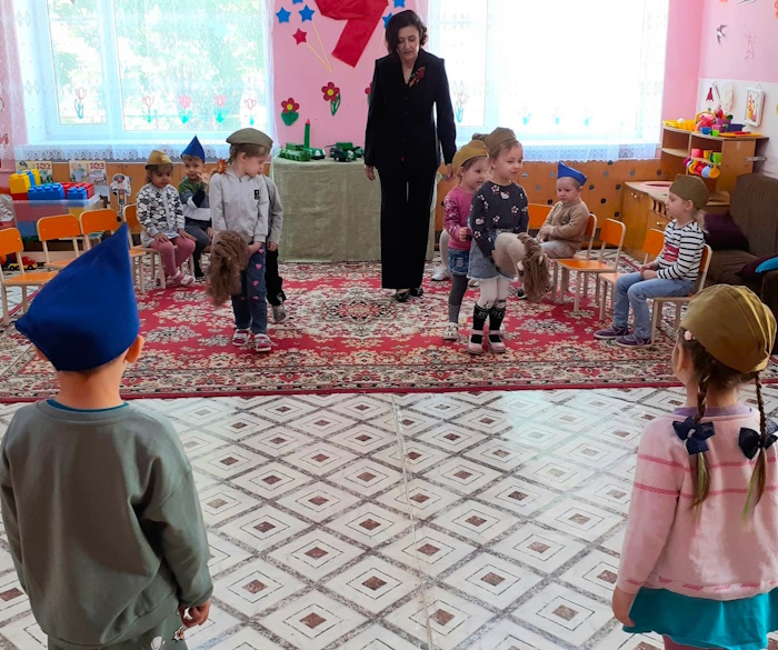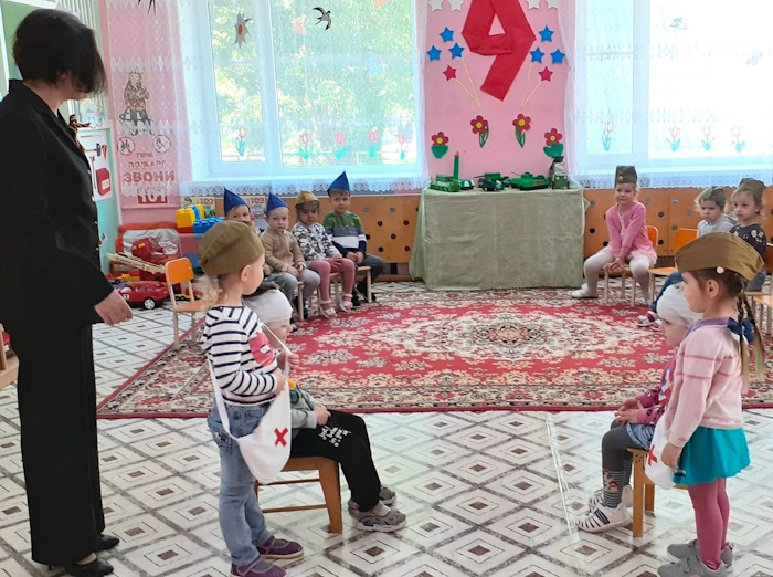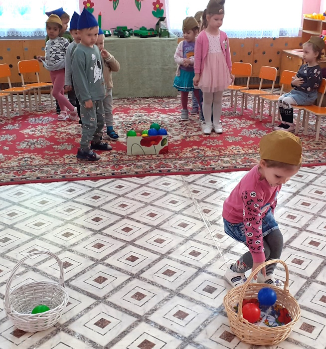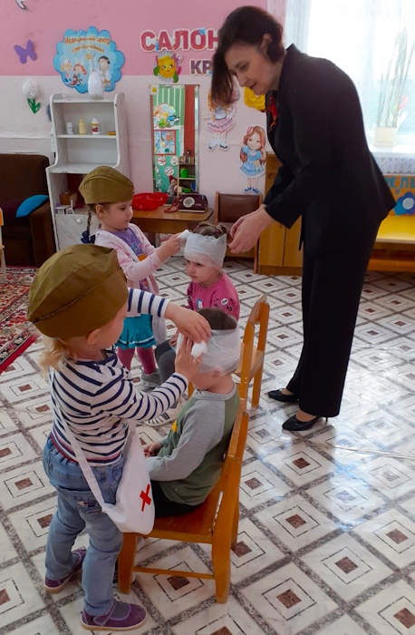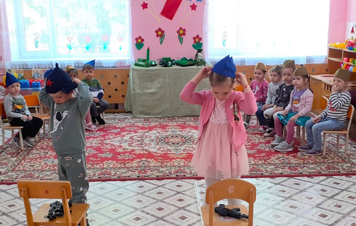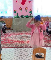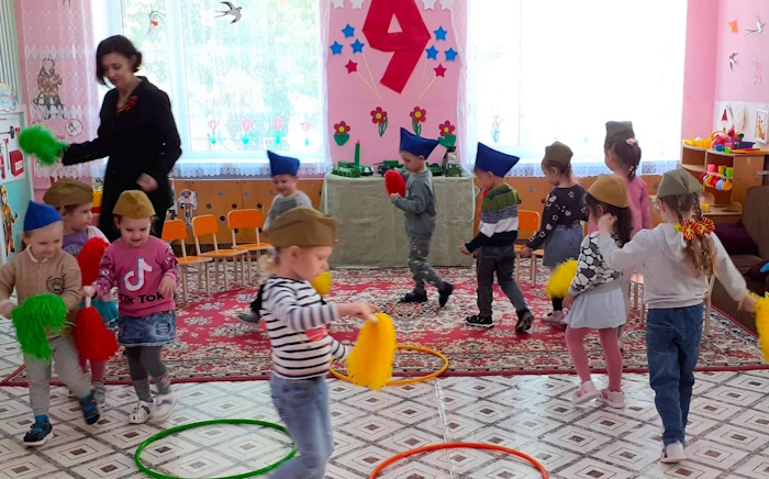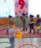 Итогом нашей работы стало развлечение «Великий май». Ребята участвовали в эстафетах: «Перенеси снаряды». «Веселые кавалеристы», «Боевое ранение», «Сбор на службу», «Салют Победы». А в финале станцевали красивый танец «Голуби мира».