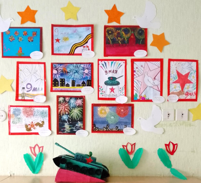 9 мая вся страна будет праздновать День Победы. Это праздник мира, дань мужеству и героизму советских солдат в борьбе с фашизмом. В преддверии этого праздника мы с ребятами младшей группе «Ягодки» совершили необычное путешествие в эпоху Великой Отечественной войны через познавательные мультфильмы. Рассматривали картинки из серии «Города герои», «Дети - герои войны», «Техника ВОВ». Дошколята проявили свое творчество при изображении салюта на открытках. Малыши вместе с родителями приняли активное участие в выставке рисунков «Салют победы».