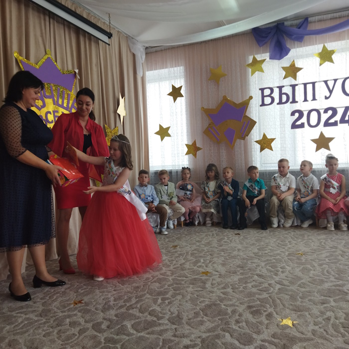 На праздник к детям приходили дети младшей группы, которые поздравили выпускников с праздником, пожелали хорошо учиться и все вместе танцевали прощальный танец. Гостем праздника стала Фрекен Бок (в роли воспитатель Котченко И.А.), которая поиграла с детьми и провела конкурсы, где дети смогли продемонстрировать свои знания и смекалку. В конце праздника по сложившейся доброй традиции был прощальный вальс и заведующая детским садом Ковалева Ю.В. поздравив выпускников и их родителей вручила дипломы об окончании детского сада.