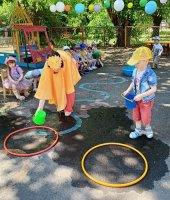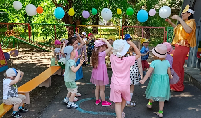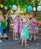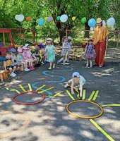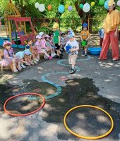 Вот и наступило долгожданное лето. В младшей группе «Ягодки» было проведено развлечение «Солнышко в гостях у ребят». В гости к дошколятам пришло Солнышко (роль взяла на себя). Солнышко поздравило малышей с началом лета и предложило устроить летние состязания: ребята отгадывали летние загадки и вместе с Солнышком играли в игры, эстафеты: «Солнышко и дождик», «Лучики для солнышка», «Напои солнышко водичкой», «Вот так!». Дошколята весело исполнили для солнышка «Летнюю полечку».