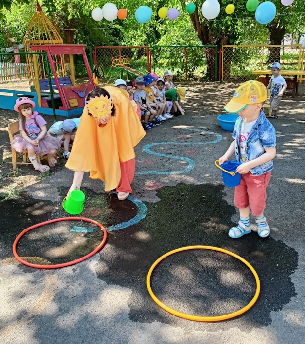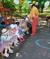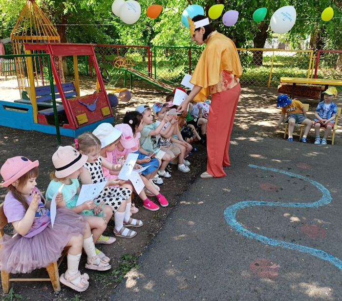 Солнышко подарило малышам раскраски и угостило сладкими бананами. Мероприятие прошло весело и задорно. Дети получили незабываемые впечатления, радость от общения со сверстниками.
