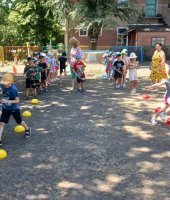 Заниматься физкультурой интересно, а весёлой физкультурой интереснее вдвойне. 16 июля в подготовительные группах «Капельки» и «Ромашка» прошло спортивное развлечение «Летом весело живём». Лозунг «Спортом мы дружны» стал девизом досуга.