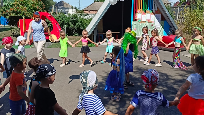 Ребята отправились в необычное морское путешествие. Чтобы добраться до клада необходимо было дошколятам выполнить сложные задания пирата Джо. Сначала малыши выловили жемчужины на дне морском. Потом запустили рыбу в пруд. Затем опустились в темную пещеру и переправились по подвесному мосту. Проявили ловкость и быстроту в игре «Водяной». Дошколята порадовали Пирата задорными танцами: «Русалочки», «Отважные пираты», «Веселый флешмоб». Ребята выполнили все задания и добрались до клада. Каждый малыш получил вкусный приз.
