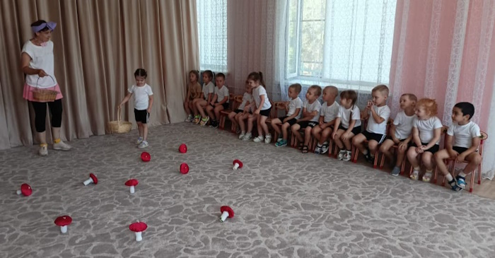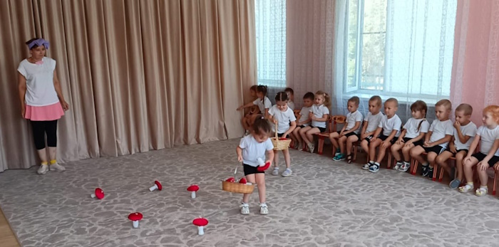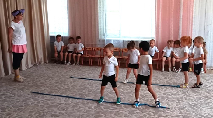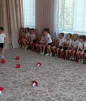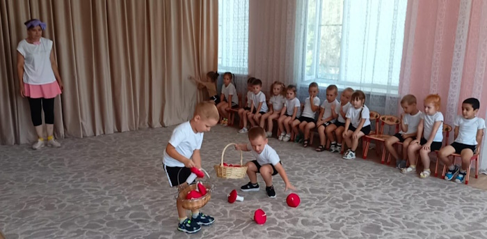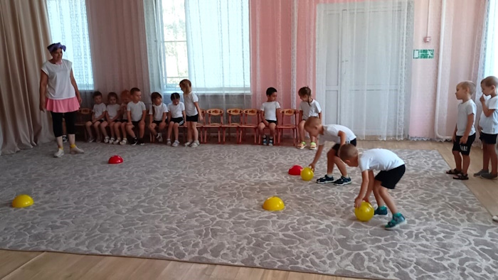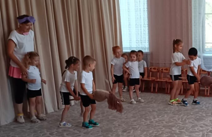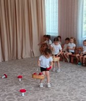 В средней группе «Ягодки» я провела физкультурный досуг «Испытание от Дюдюки - Вредины». Ребята отправились в волшебную страну, чтобы помочь сказочным героям. Но в волшебной стране дошколят встретила Дюдюка – Вредина (роль Дюдюки выполнила я) и предложила пройти испытание с которыми трудно справиться. Чтобы стать сильными, ловкими и выносливыми ребята дружно выполняли задания: прокатили Колобка по дорожке и помогли собрать грибы для Красной шапочки. На лодке переправились к царевне Несмеяне. Потом перевезли принцесс на лошади в замок. Также преодолели огненную реку по мосту. Дюдюка хотела поссорить ребят в ходе этого путешествия, но благодаря эстафете «Дружные ребята» все помирились. Завершили дошколята своё путешествие шуточным танцем «Зажигаем».