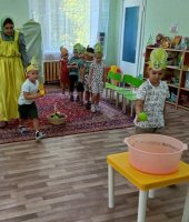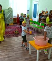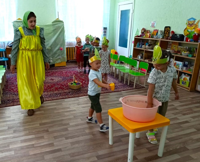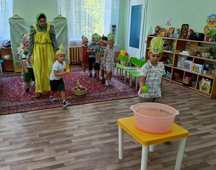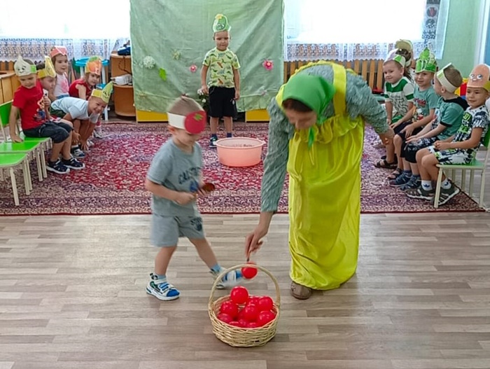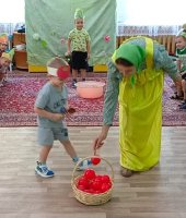 В средней группе «Ягодки» я провела развлечение «Помощники Аленки». В гости к ребятам пришла Аленка (эту роль выполнила я ) и попросила помочь собрать урожай для бабушки и дедушки. Дошколята активно взялись за дело. А что растет на огороде? Малыши проявили сообразительность при отгадывании загадок с грядки. В эстафете «На компот или салат» сортировали овощи и фрукты. А водители перевозили урожай с огорода в игре «Сбор урожая». Затем каждый малыш переносил помидоры с грядки в упражнении «Перенеси помидор ложкой». Ребята проявили ловкость и быстроту в игре «Огуречик – огуречик». Завершилось мероприятие музыкальной игрой «Есть у нас огород». Аленка поблагодарила малышей за помощь в сборе урожая и угостила детей ароматными яблоками.