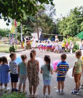 Почетное право поднять Государственный флаг Российской Федерации было предоставлено заведующему детским садом Елене Сергеевне Походеевой. Под звучание гимна РФ флаг был поднят. Ребята прослушали гимн смирно, равняясь на Государственный флаг РФ. Также, торжественно был поднят флаг нашей Ростовской области.