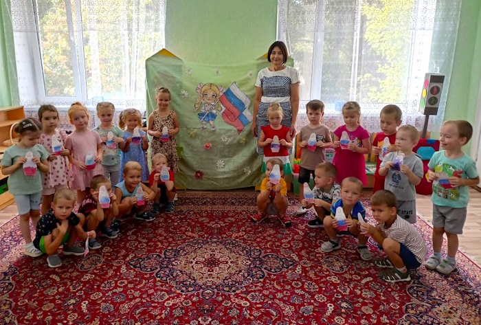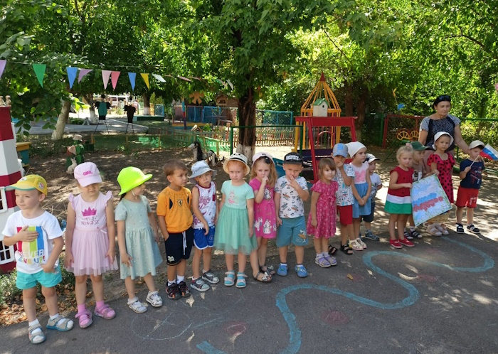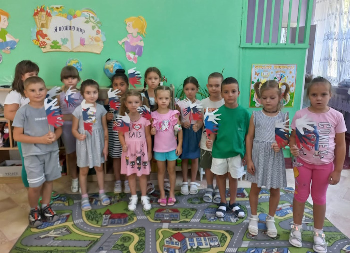 22 августа в рамках празднования Дня Государственного флага Российской Федерации, в нашем детском саду во всех возрастных группах прошли мероприятия, посвящённые Дню рождения Российского флага. Педагогическим коллективом с воспитанниками была проведена огромная предварительная работа: разучены стихи и песни о России и Государственном флаге, проведены беседы о нашей Родине - России, знакомство с Государственной символикой.