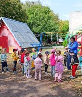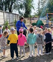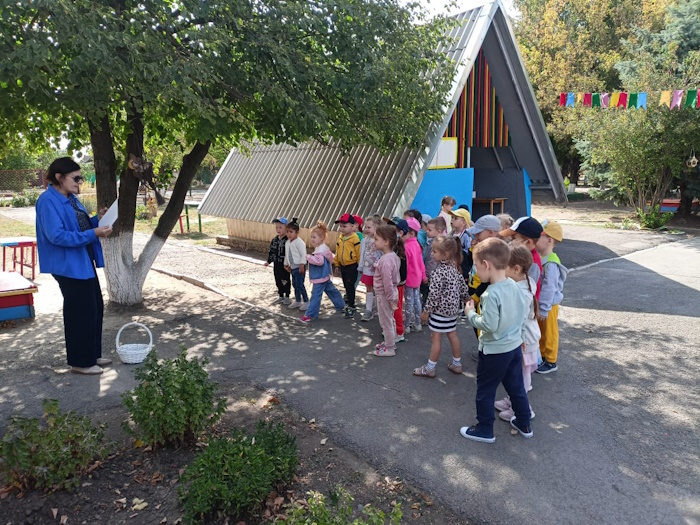 Наступила осенняя пора. Я решила показать на прогулке ребятам средней группы «Ягодки» осеннюю природу. Прогулка началась с письма от мудрой Совы с необычными заданиями. Сначала дошколята отправились на огород и там их ждали овощные загадки от тетушки Совы. А отгадки малыши отыскали на грядке. Затем надо было найти самое осеннее дерево на участке детского сада и ребята справились с этим заданием-это был клен. Дети с удовольствием прочитали выученные стихи об осени. При выполнении следующего задания ребятам пришлось проявить свою сообразительность «Собери в корзинку подарки Осени». Дошколята положили в корзинку семена клена и липы, шишки, орехи, каштаны, плоды шиповника и калины. Также в ходе эксперимента с листьями они выяснили, что вода испаряется из опавших листьев, поэтому они становятся ломкими и сухими. Мы поиграли в веселые игры «Совушка», «Осенние листочки». А в конце путешествия ребят ждал сюрприз: «Корзина с яблоками». Ребята решили отблагодарить мудрую сову и нарисовали ей яблоньки с яблоками.
