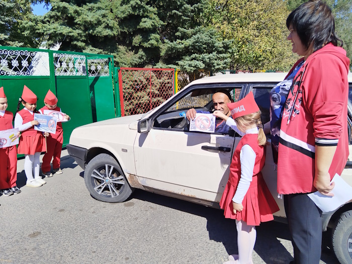 В рамках «Единого дня безопасности дорожного движения» воспитанники команды ЮПИД «Перспективные ребята» провели акцию «Стоп, гаджет!». Данной акцией команда ЮПИД постаралась привлечь внимания водителей и пешеходов к проблеме дорожно-транспортного травматизма на дорогах, а именно, не пользоваться гаджетами во время перехода проезжей части и вождения автомобиля. Ребята вручили пешеходам и водителям памятки, разъясняющие, почему так опасно пользоваться во время движения мобильным телефонам.