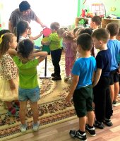 В рамках «Недели безопасности» воспитанники старшей группы «Непоседы» приняли участие в игре «Сундук с сюрпризом от Незнайки» по ПДД с элементом геокешинга. В группе дети нашли на пешеходном переходе письмо от Незнайки. Он пригласил детей поиграть. Но входе игры придётся выполнять задания и тогда будет найден сундук с сюрпризом. Мы с ребятами рассмотрели карту-схему с изображением игрового маршрута с пунктами остановок, где могут быть задания. Строго соблюдая маршрут, ребята отправились в путешествие и выполняли игровые задания: отгадали загадки про дорожные знаки, слаживали дорожные знаки из частей и называли их, рассказали о вида транспорта, починили светофор, передавая жезл по кругу после остановки, отвечали на вопросы по ПДД.
