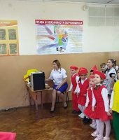 Члены команд ЮПИД «Светлячки» и «Перспективные ребята» нашего детского сада № 33 «Светлячок» 17 октября приняли участие в празднике по ПДД «Посвящение первоклассников в пешеходов», которое проходило на базе МБОУ ЕСОШ № 7 им. О. Казанского. Мероприятие прошло в познавательно игровой форме. ЮПИДовцы поздравилаи стихами первоклашек, а также активно учувствовала в играх, которые способствовали закреплению знаний правил дорожного движения, знаний о сигналах светофора, пешеходном переходе и других основах безопасного поведения на дороге.