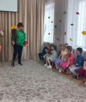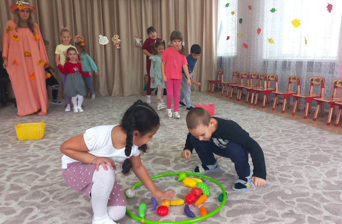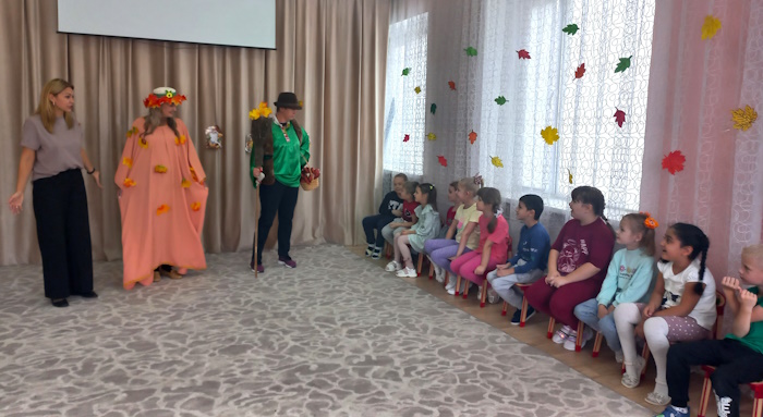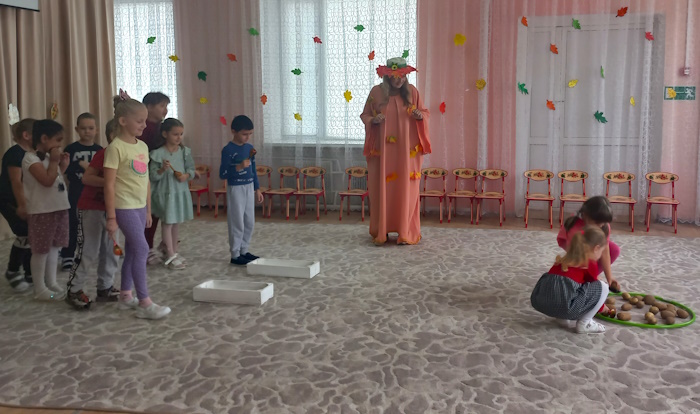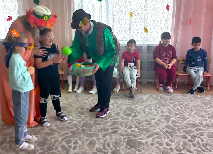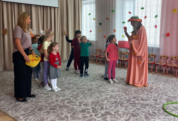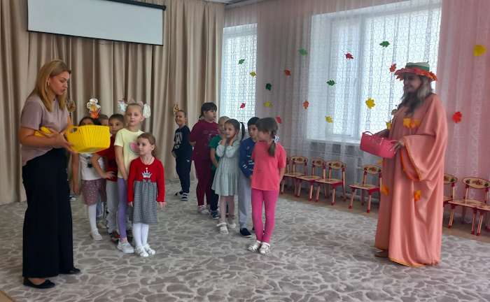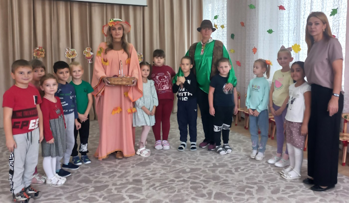 В подготовительной группе «Ромашка» прошел досуг на тему «Приметы осени». В гости к ребятам пришли волшебница Осень (в роли учитель-логопед Гончарова С.С.) и леший (в роли инструктор по ФК Улескя Н.Г.). Вместе с детьми гости играли в игры: «С какого дерева листок?», «Ловкий грибник», «Дождик», «Соберем урожай». Дети рассказывали о приметах осени, читали стихи. Осень приготовила сюрприз для детей красные наливные яблочки, которыми и угостила детей. Мероприятие прошло весело и увлекательно.
