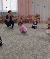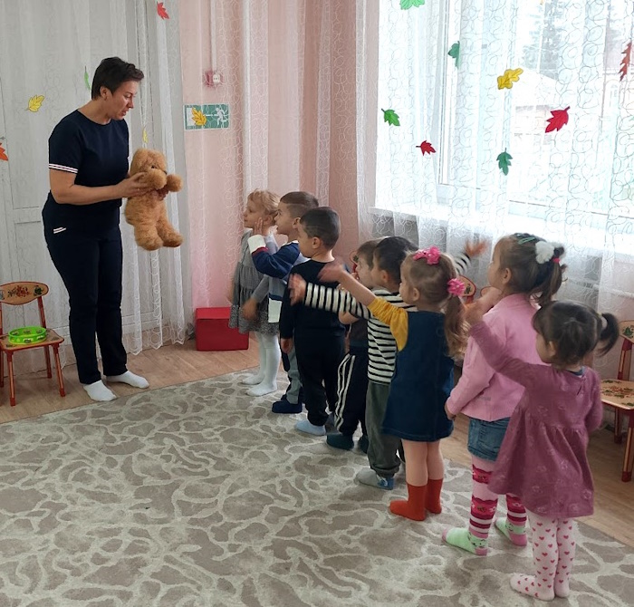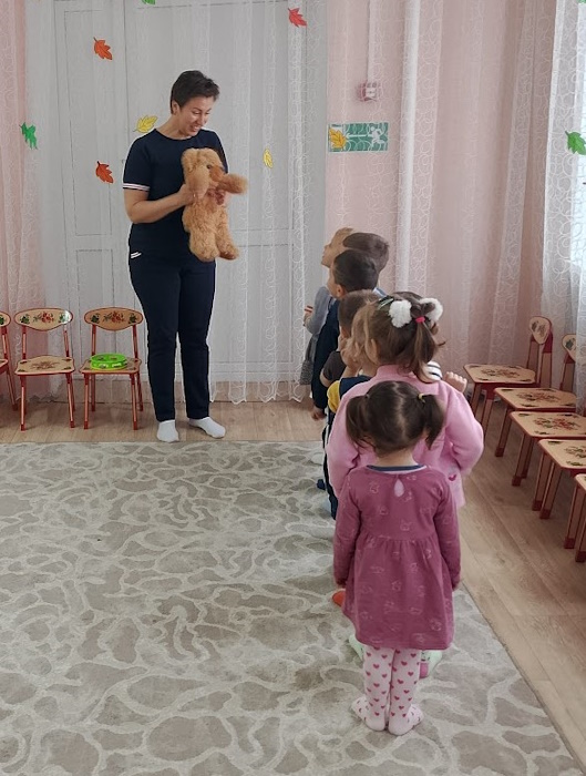 В конце занятия была выполнена дыхательная гимнастика «Подуй на листочек». Мишке очень понравилось, как малыши выполняли упражнения. Он поблагодарил ребят и попрощался. Малыши получили положительные эмоции и заряд бодрости на целый день.