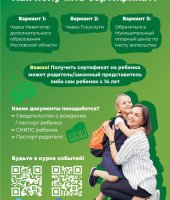 На территории Ростовской области работает Горячая линия для родителей по вопросам использования сертификата дополнительного образования в Ростовской области: https://t.me/rmcro, Адрес электронной почты защищен от спам-ботов. Для просмотра адреса в вашем браузере должен быть включен Javascript..